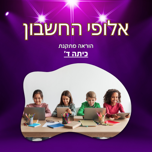 כיתה ד' יש קפיצה משמעותית בחומר הנלמד, מטרתנו היא להמחיש ולהנגיש את החומר בצורה ויזואלית שתאפשר לתלמיד הבנה מעמיקה של הנלמד. החומר הנלמד: השבר הפשוט 1.הכרת השבר הפשוט; 2.פעולות בשברים (היכרות ראשונה). 3.עקרונות המבנה העשרוני (חזרה); 4.שיטת האלף-בית. 5.ישר המספרים 6. פעולות החשבון 7. חיבור וחיסור (ללא הגבלה); 8. כפל במאונך (בגורם רב-ספרתי); 9.חילוק ארוך (המחלק הוא חד-ספרתי או עשרת שלמה); 10. אומדן ופיתוח תובנה מספרית; 11.שאלות כוללות (אינטגרטיביות); 12.סדר הפעולות והשימוש בסוגריים; 13.תכונות ה0- וה1-; 14. מספרים ראשוניים ופריקים; 15.סימני התחלקות ב,3- ב6- וב9-; 16.צורות וגופים 17. מצולעים, אלכסון; 18.ריבוע ומלבן; 19. תכונות של צלעות וזוויות במשולש